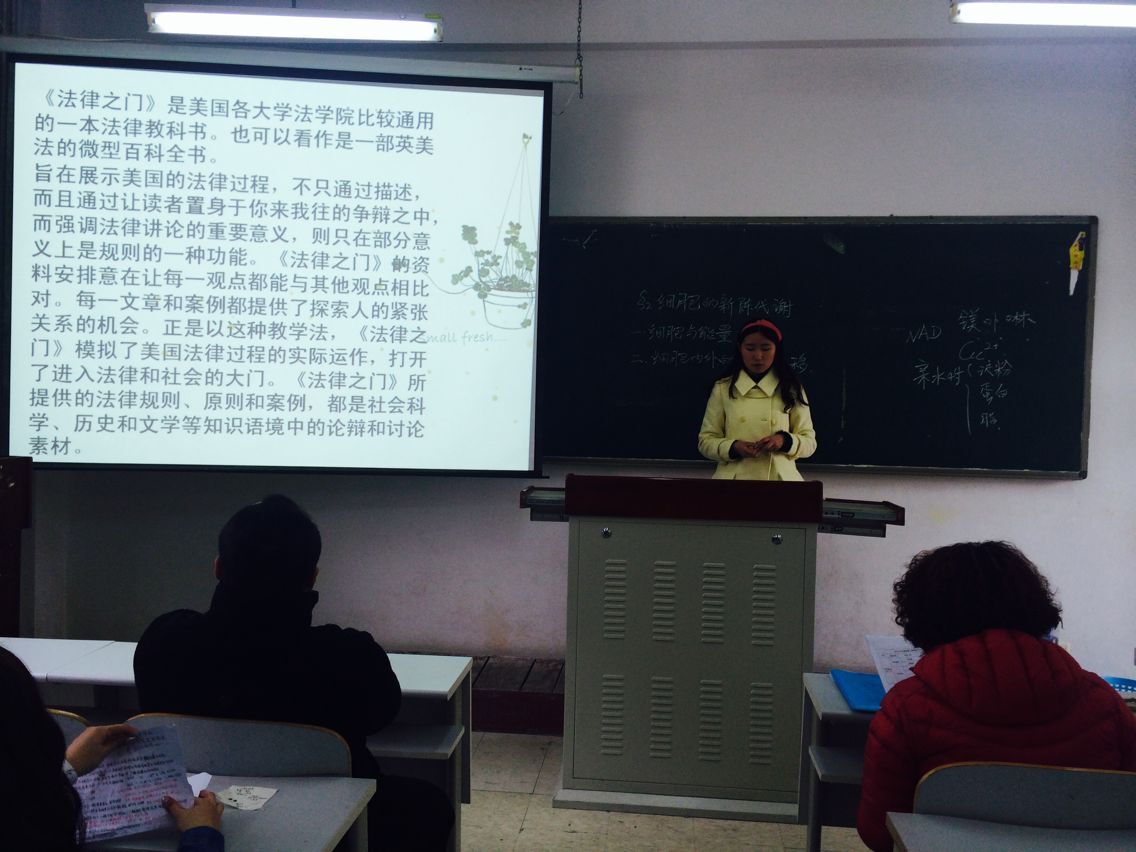 法学读书沙龙创办于2014年10月,沙龙本着“以文会友,共同耕耘一片法律文化的绿洲”为宗旨,以追求法律真知为目的,为2014级法学新生提供一个展示自己、发现自己、超越自己的文化平台。法学读书沙龙包括两个板块:好书推荐和关注热点。在本期“好书推荐”板块中,有三位同学做了精彩的发言。他们充分利用多媒体等方式向大家推荐自己喜欢的法学名著、经典案例或法制节目,分享他们的心得体会。在“关注热点”板块中,九位同学围绕“从黄海波案看中国收容教育制度的合法性与合理性”这一话题展开了激烈的讨论。大家唇枪舌剑,气氛热烈,并带动了听众参与的热情。本次读书沙龙在一阵阵争论和掌声中圆满结束。