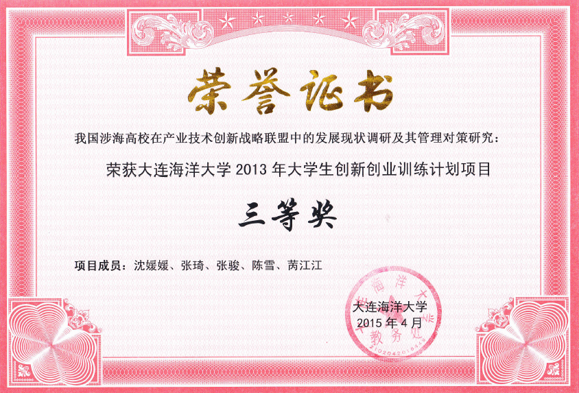 1.项目名称:我国涉海高校在产业技术创新战略联盟中的发展现状调研及其管理对策研究