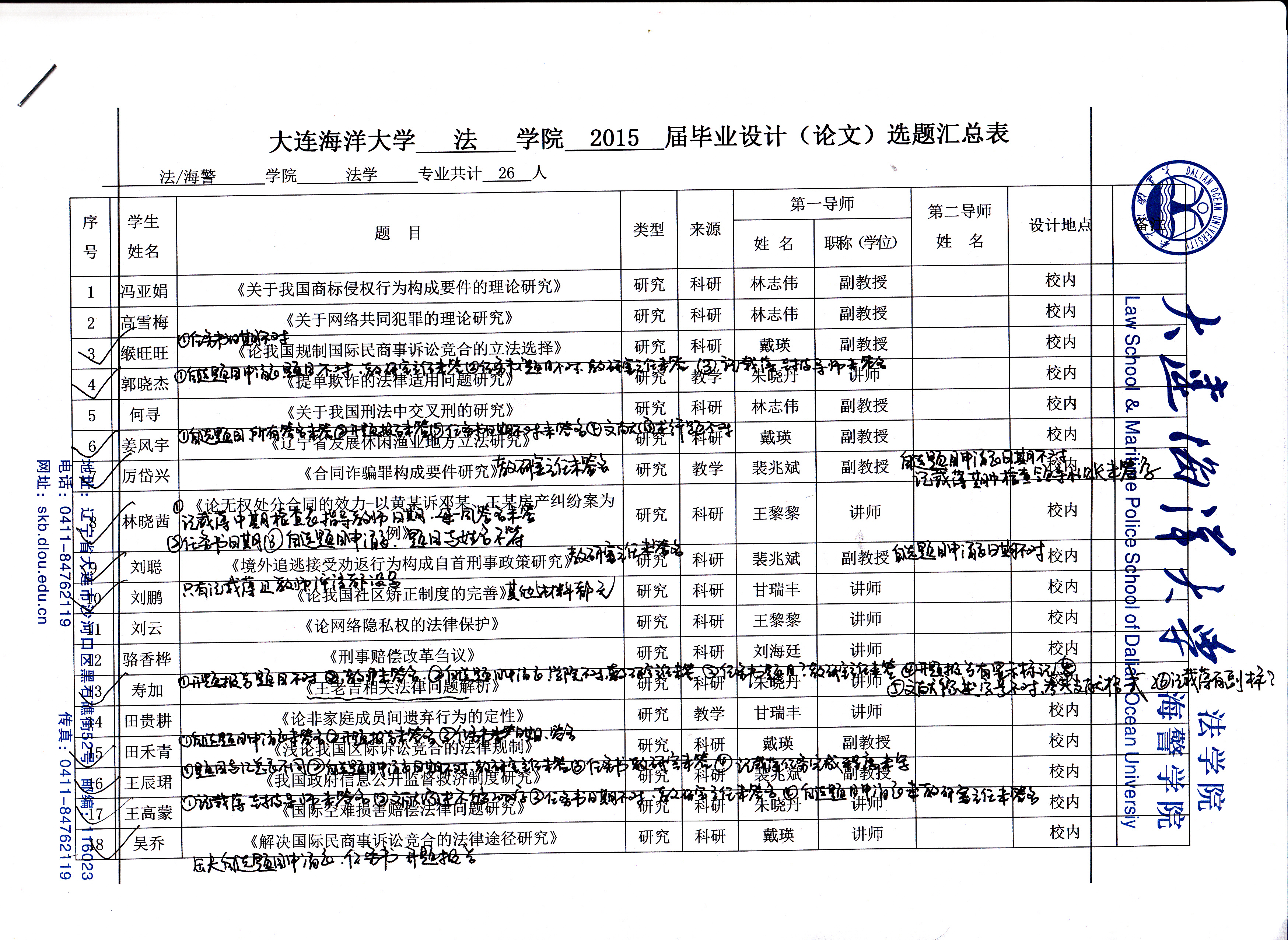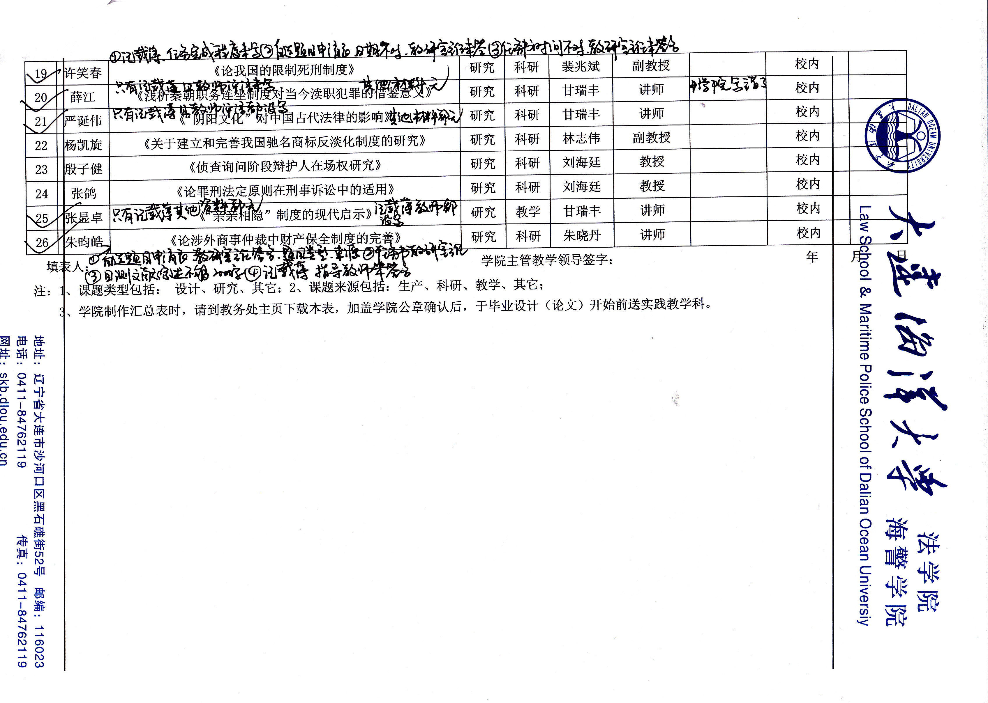 法学专业共计26个员工,上交材料17份,其中完整的材料13份,有4份材料只有记载簿。经检查,发现存在以下问题: