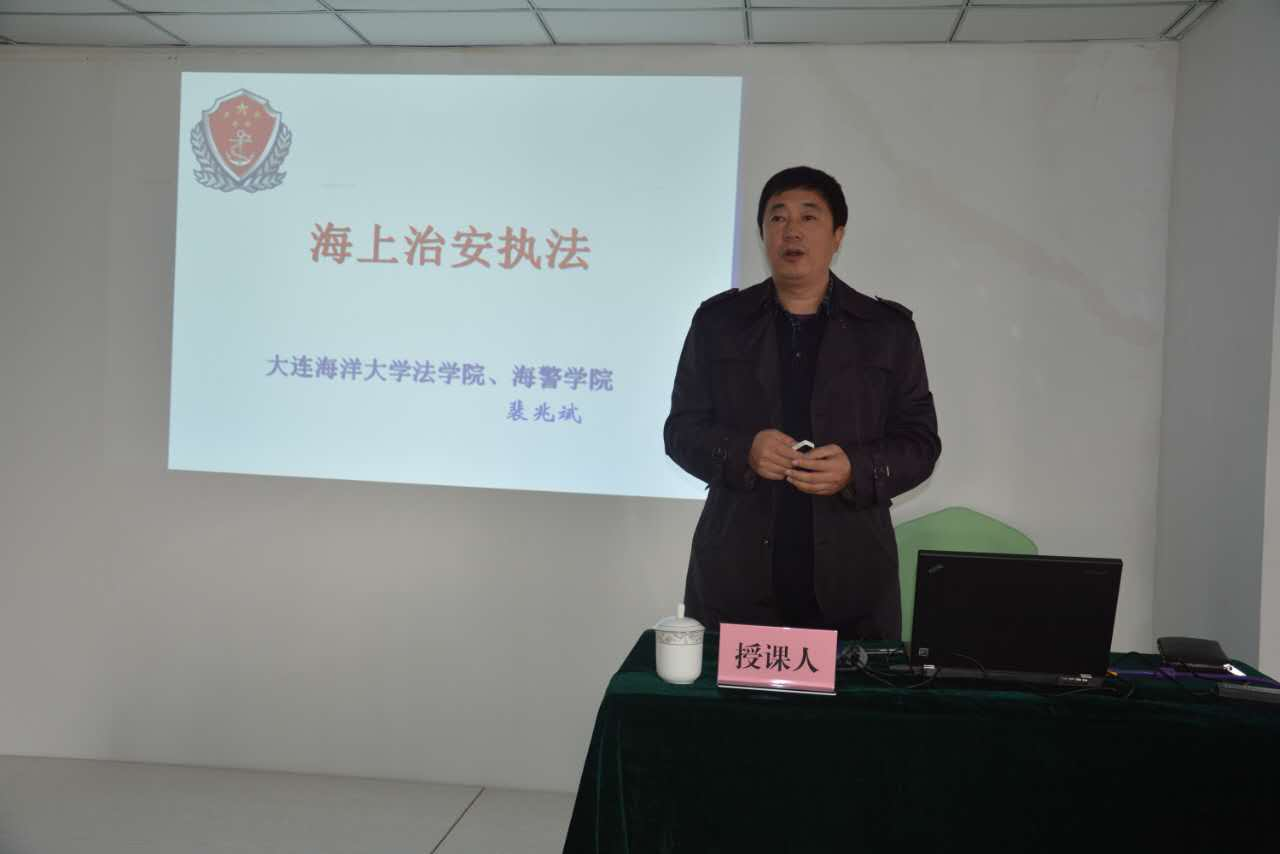 中国海警局辽宁总队海警执法资格认证培训班于11月2日在辽宁海警总队船艇修理厂开展培训工作,总队筹备组毕传江副组长和法公司/海警公司经理裴兆斌应邀参加了培训班的开幕仪式。
