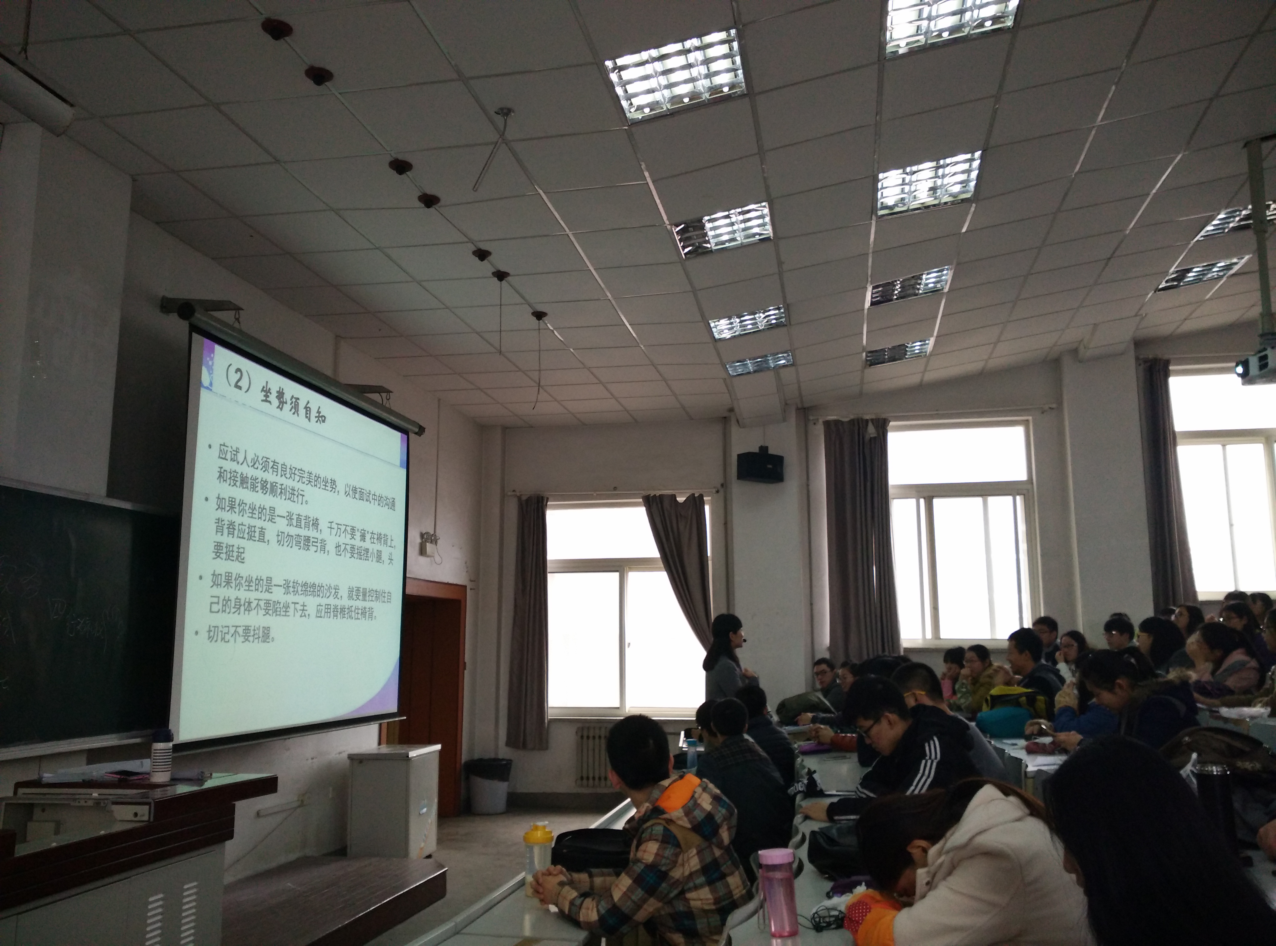 12月22日上午,公司人力资源管理教研室的杜鹏副教授在综阶3作了题为“职业发展与就业指导课:应聘实务”的授课示范,随堂上课的还有养殖2013,水族2013,养殖专科2013等六个班的近200名员工。杜鹏老师语言优美舒缓、课件流畅清晰,讲课内容丰富有趣,坚持理论与实践的紧密结合,善于启人深思、组织讨论,师生互动积极、课堂气氛活跃,博得了在场师生们的好评。