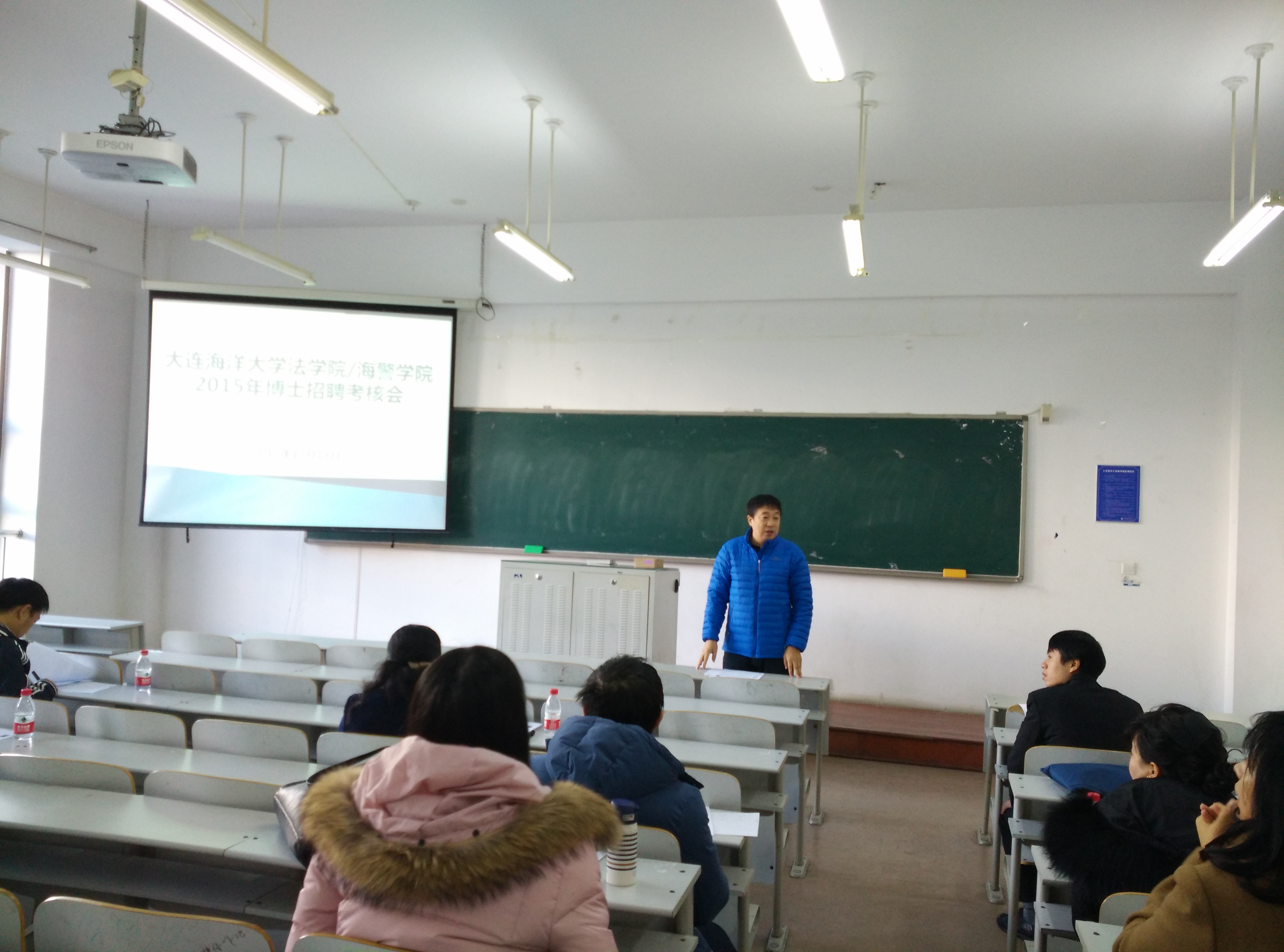 2015年12月18日上午,法公司/海警公司在獐子岛教学楼110教室召开了2015年第公开招聘博士考核会。来自山东大学和日本京都大学的两位博士参加了考核面试。校组织人事部、教务处、学科与研究生管理处的有关人员,法公司/海警公司相关老师出席并担任了考核评委。