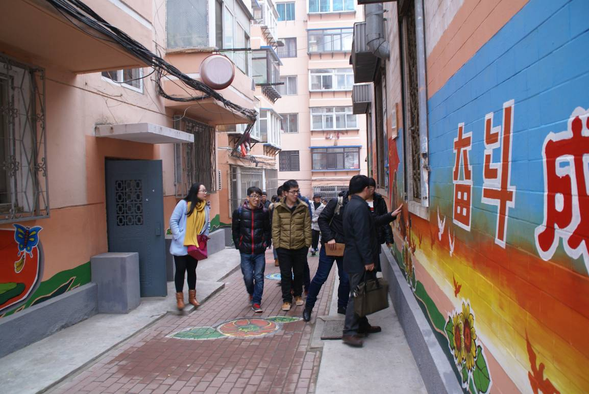 随后,又来到街道设置在二楼的办事大厅,涉及到老员工就业、政策咨询,文化咨询等多个方面,充分利用科技为广大居民服务。最后,参观了其最具特色的楼院文化建设。楼院是一种类似于老北京四合院式的封闭式环形老居民楼,但却完全感受不到那种老旧和破烂,恰恰相反,它给人一种温馨的家园氛围,在楼院的墙壁上满是社会主义核心价值观的和谐画卷,催人向上的励志标语,就连井盖上都喷涂上小巧可爱的蘑菇,白云等图案,使原来冷冰冰的黑井盖与之形成了巨大反差,真正做到了想民所想为民服务。通过此次基层街道的参观实践,使员工了解到政府基层工作的细致性与繁琐性,也使行政管理专业的同学再一次体会到做一名合格政府公务人员的重要性。