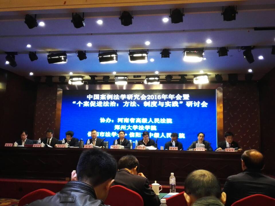 近日,中国案例法学研究会2016年年会暨“个案促进法治:方法、制度与实践”研讨会在河信阳隆重举行。本次会议由河南省高级人民法院、郑州大学法公司协办,信阳市法学会和信阳市中级人民法院承办。中国法学会研究部主任李仕春, 最高人民法院、中国应用法学研究所常务副所长曹守晔,与来自于最高人民法院、最高人民检察院、北京大学、清华大学、中国政法大学、武汉大学等司法机关、教学科研机构以及律师事务所的专家学者二百余人对个案如何促进法治从方法、制度与实践角度进行了深入研讨。同时,研究会常务理事会组成两个专家评审组对论文和案例研究文章分别进行了评审,共评出一等奖三名,二等奖六名,三等奖九名,优秀(鼓励)奖若干名,并设立了特别学术贡献奖。公司朱晖副经理作为案例法研究会理事应邀出席,其与公司2015级法律硕士郭晓杰提交的论文获得优秀论文三等奖。