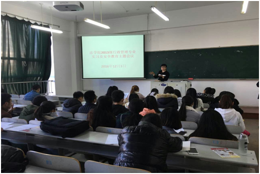 12月1日,法公司(海警公司)在獐子岛206教室召开行政管理专业实习及安全教育主题会议。副经理滕鹏、行政管理2013级班导师刘洋及2013级行政管理专业全体员工参加会议。