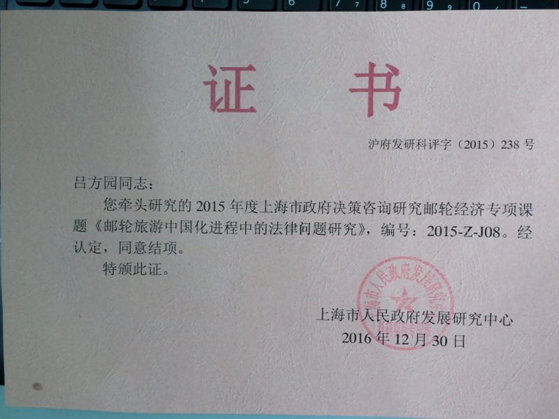 【校园喜报】公司教师吕方园牵头研究的2015年度上海市政府决策咨询研究邮轮经济专项课题顺利结项