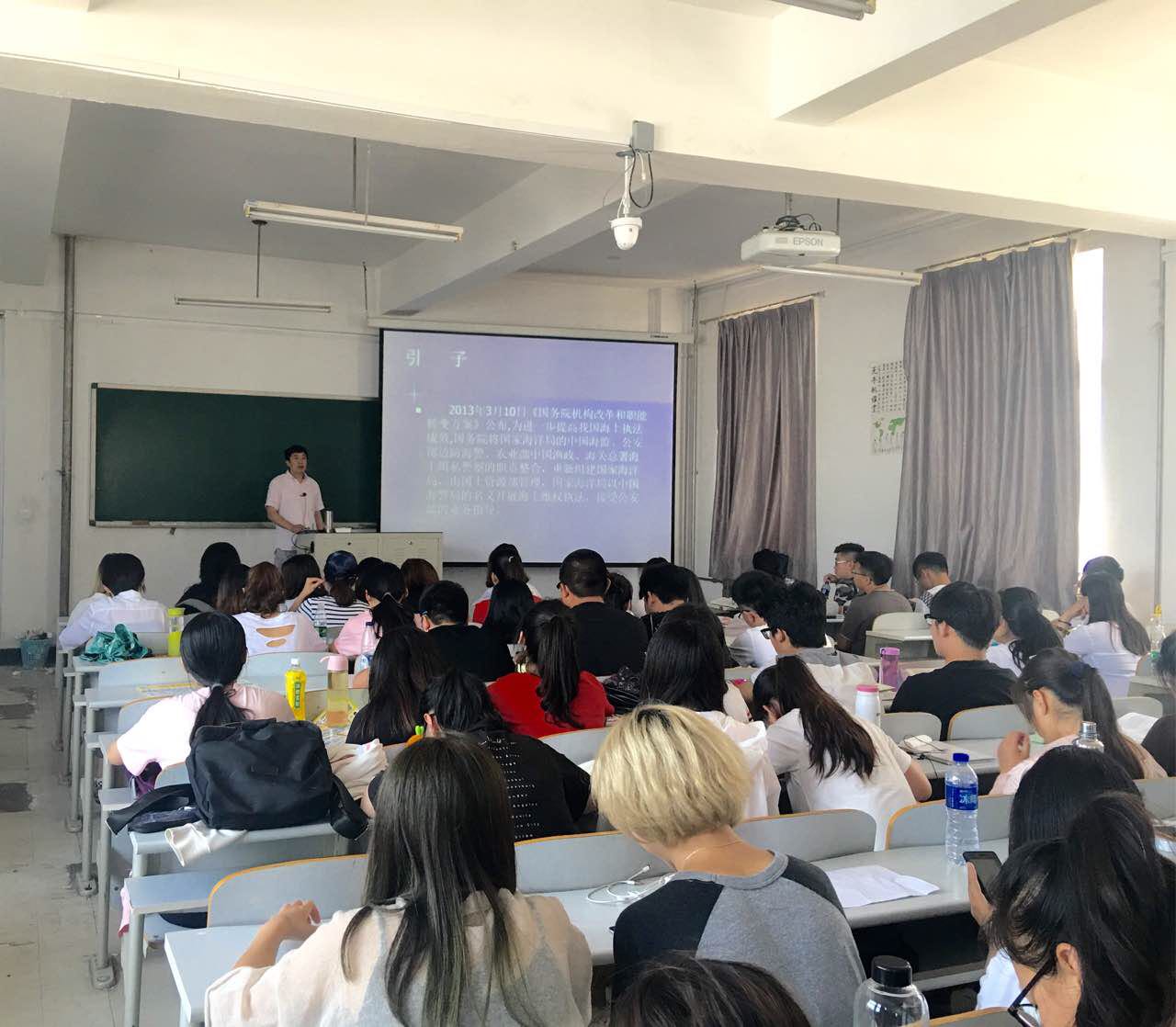 6月9日下午,法公司、海警公司经理裴兆斌在公司渤海校区为公司15级本科生上了一堂形势与政策课程-《南海形势分析》。