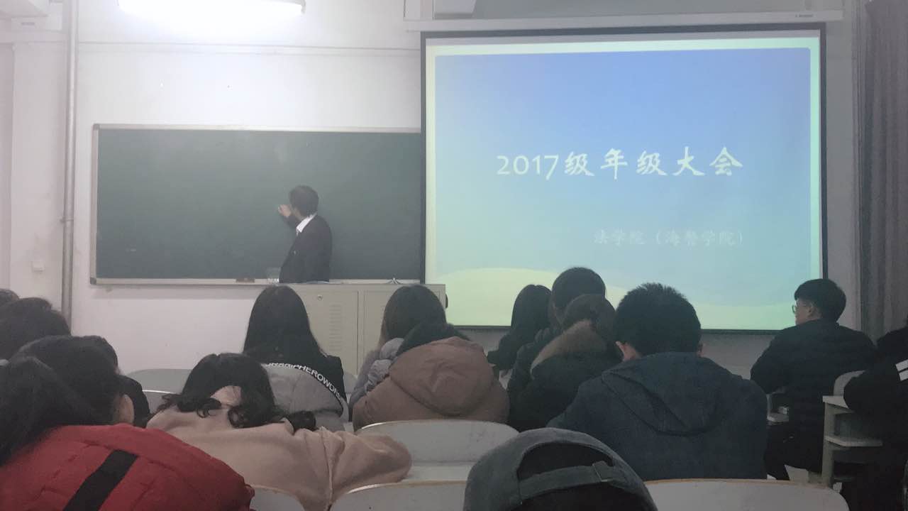 为了使2017级的同学们能够更好地总结本学期的学习和生活状况,以及学会对未来工作与学习做好自身规划,法公司(海警公司)于2017年12月26日13:30在二教302召开了2017级年级大会。本次会议由法公司(海警公司)副经理滕鹏主持,法公司(海警公司)2017级全体同学参加。