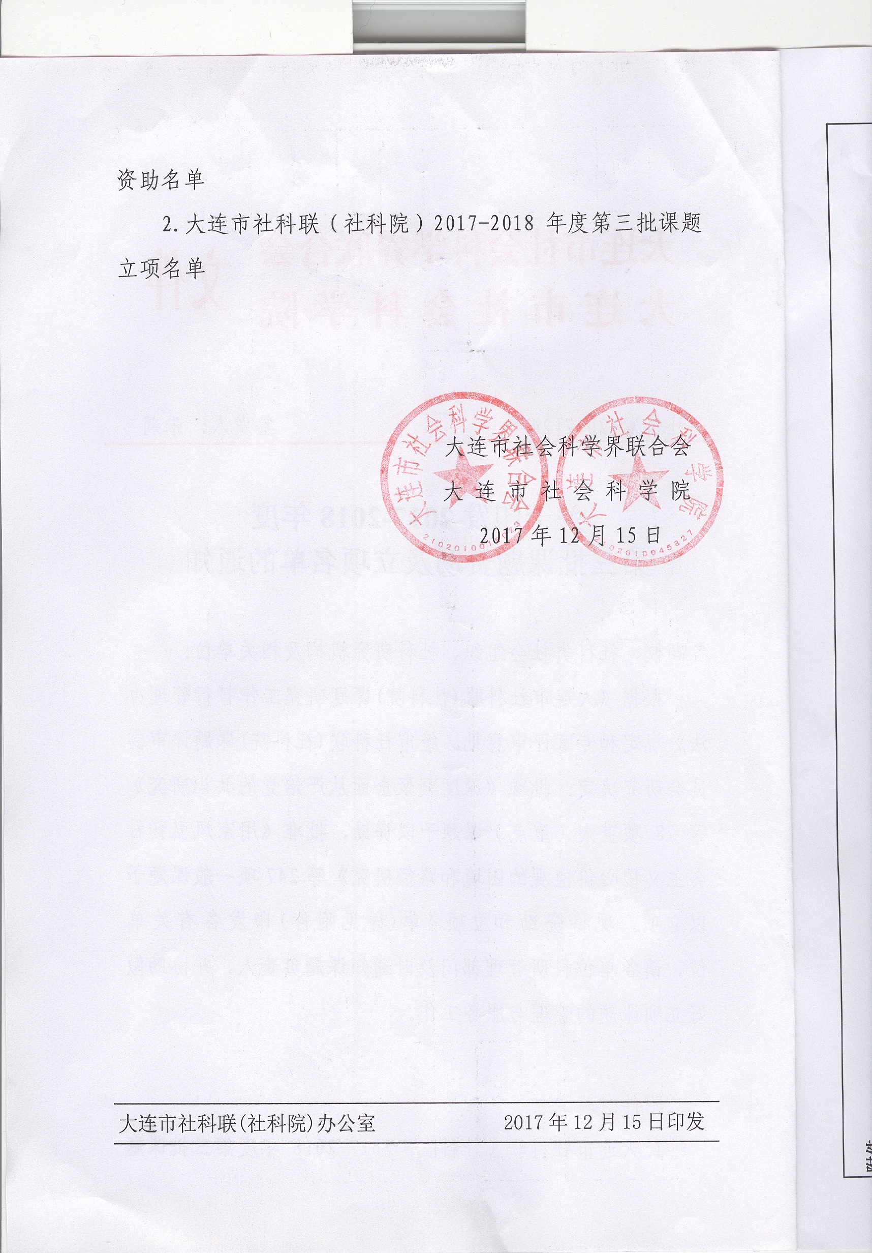 【校园喜报】公司获批多项大连市社科联2017-2018年度课题资助