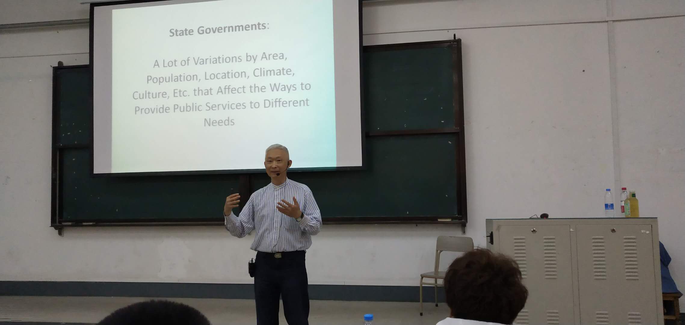黄铁屿博士以公民的范围作为出发点从民主方式、政治体制、财政、税制等方面介绍了中美两国体制的区别,通过列举众多实际案例证明中美两国在行政结构和政治结构方面存在着相当大的差别,并详细说明了中美两国政府的组织结构以及地方政府内部行政组织存在的差异。在讲座过程中,黄铁屿博士以风趣幽默的方式讲述了很多亲身经历,直观形象地使大家了解到中美地方治理的不同之处,也使大家对美国的行政结构有了更深层次的了解。讲座结束之后进入提问环节,四位同学分别提出了自己的观点和问题,黄铁屿博士耐心、仔细地解答了每位同学的疑问并提出了自己的见解。