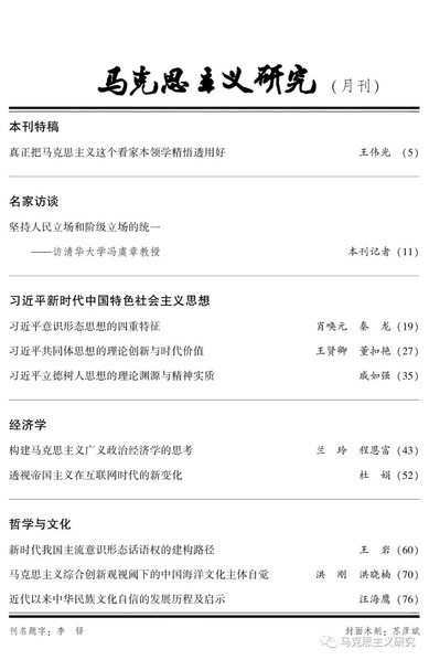 《马克思主义研究》系全国中文核心期刊、中国人文社会科学核心期刊、中文社会科学引文索引(CSSCI)来源期刊、中国学术期刊综合评价数据库来源期刊。1995年创刊,现由中国社会科公司马克思主义研究学部、中国社会科公司马克思主义研究院共同主办,是国内马克思理论研究领域的权威期刊,是全国惟一一份以研究中外马克思主义理论及其应用为宗旨的大型学术理论刊物。