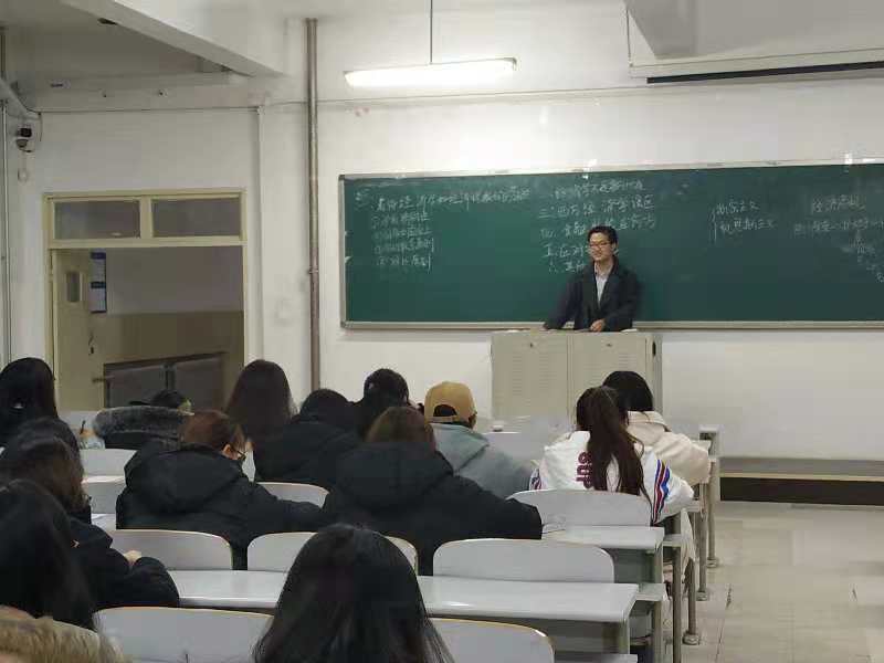 翟虎祥从马克思主义哲学角度入手,提出了看待经济学理论与经济现象的四大方法论,为本次主题讲座奠定了基本哲学论调。紧接着,翟虎祥从破除西方经济学迷信、中国经济风险在何方、发展中国特色的社会主义市场经济发展模式三大论点向同学们做了具体的讲述。在其中又重点阐述和分析了斯密主义、新古典经济主义和凯恩斯主义之争、经济危机本质及渊源、小政府大社会谬论、美国金融霸权和跨国资本垄断、中美贸易战。其论点新颖却又不乏理论道理,着实驳斥了媒体经济学家的一些荒谬经济观点。讲座的最后,翟虎祥又和在座的同学们探讨了当前中国经济学界的一些观点,诸如“中国人口红利已经消失?”、“中国未来经济应该大力发展服务业?”、“去产能、去杠杆就是单纯的倒闭重工业企业和减少使用金融手段?”、“国企效率比私营企业效率低下?”等现实问题,切实有效地解答了当前人们对于经济发展的困惑与疑问。