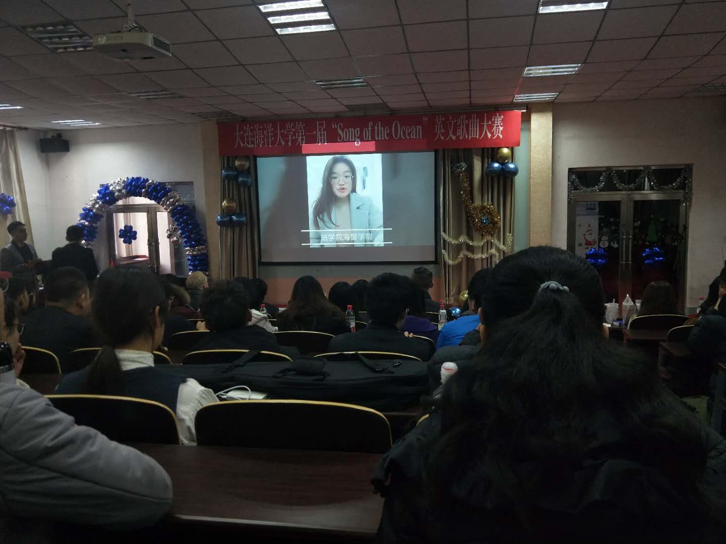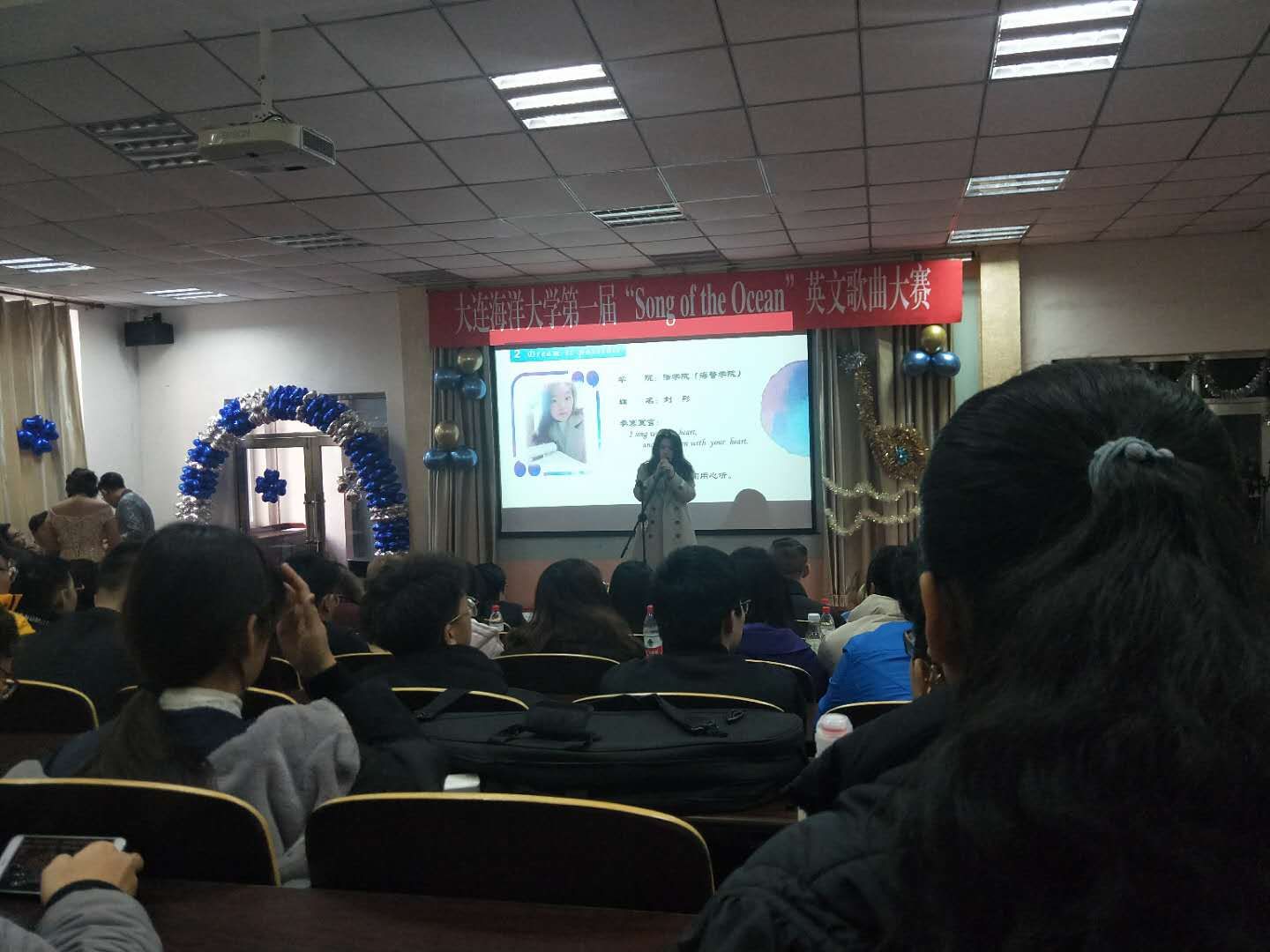 2018年12月19日,法公司(海警公司)2018级人力资源管理专业的刘彤同学前往黄海校区参加365英国上市公司第一届“Song of the Ocean”英文歌唱比赛决赛。