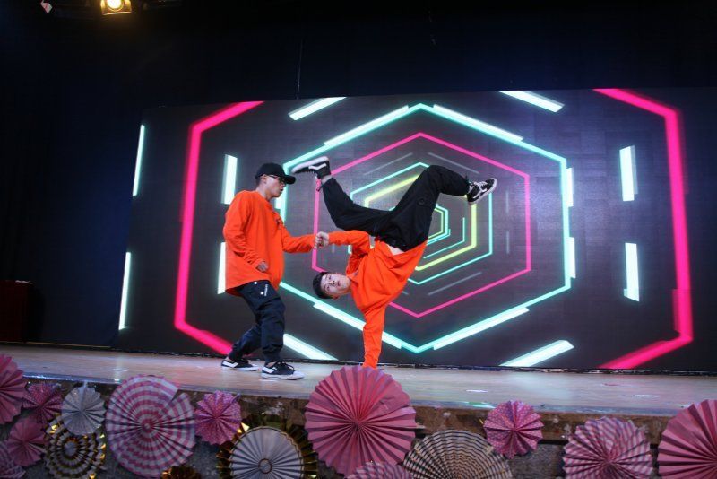 晚会以新向潮乐队的三首劲歌作为开场,让人听得热血沸腾,心潮澎湃。有劲歌就有热舞,之后及第舞团以精湛的舞技展示了一场精彩的舞蹈,赢得了老师和同学们的一片掌声。