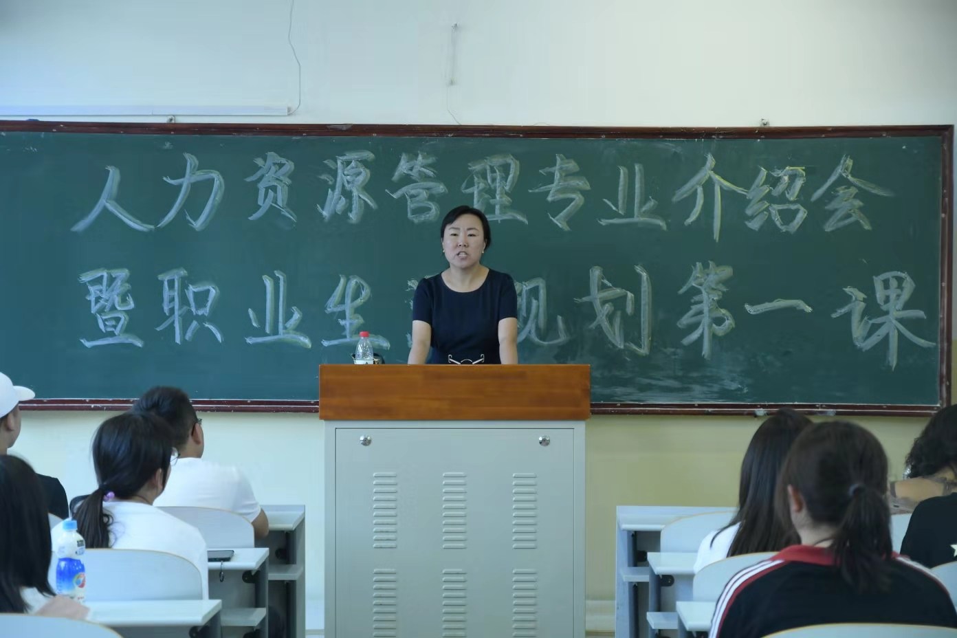 (图为张雪卉老师为人力资源管理专业同学带来职业生涯规划第一课)