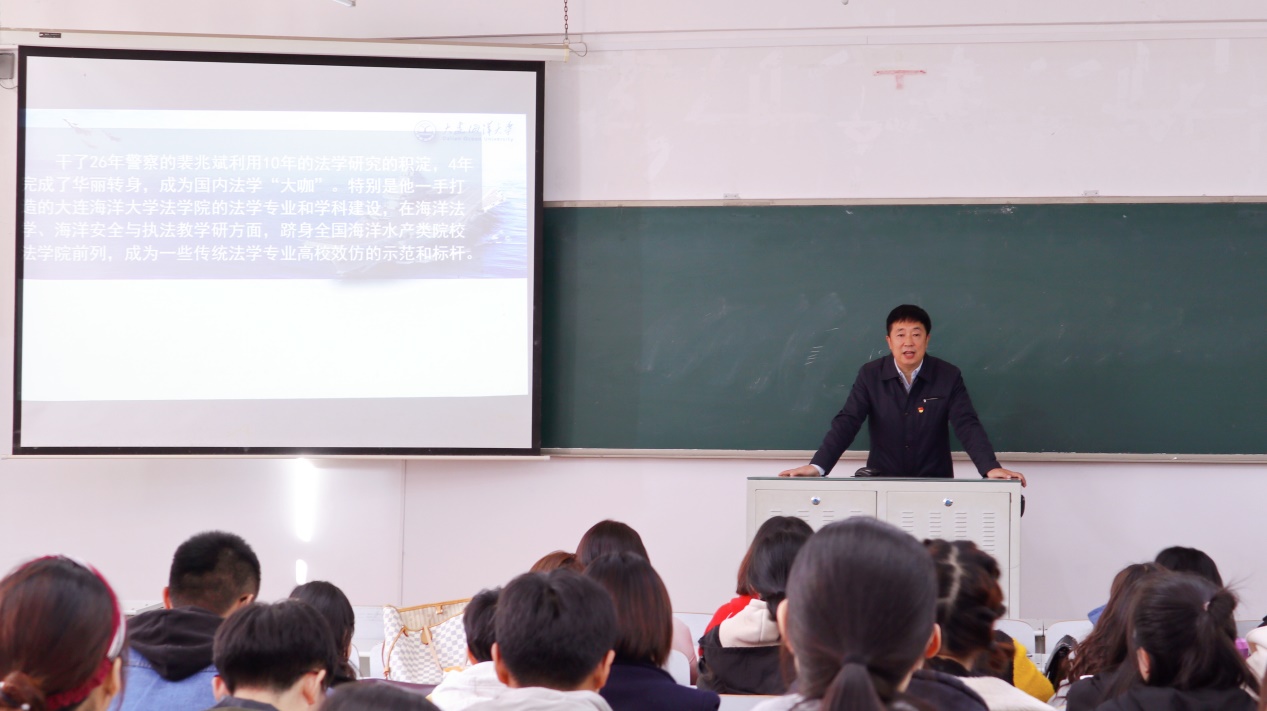 最后,裴兆斌勉励全体研究生,在今后的学习生活中能够始终坚持“不忘初心、牢记使命”,坚定“海洋强国建设中砥砺前行、奋斗不息”的信念。作为朝气蓬勃的当代研究生,要在自我提高上下功夫,自觉面向书本,自觉面向实践,不断提高政治境界、思想境界、道德境界,在“共建一带一路”和“建设海洋命运共同体”的伟大征程中贡献自己的力量,更要为决胜全面建成小康社会、实现中华民族伟大复兴的中国梦作出贡献。