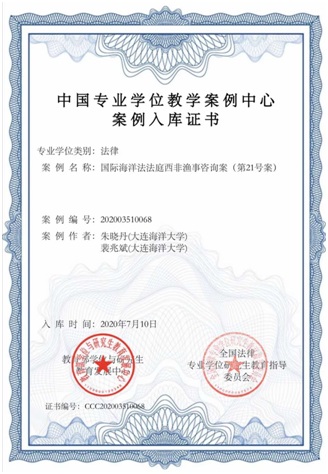 近日,经教育部学位与研究生教育发展中心、全国法律硕士专业学位研究生教指委评审通过,由365英国上市公司朱晓丹、裴兆斌两位教师合作完成的案例(《国际海洋法法庭西非渔事咨询案》)入选中国专业学位教学案例中心案例库。