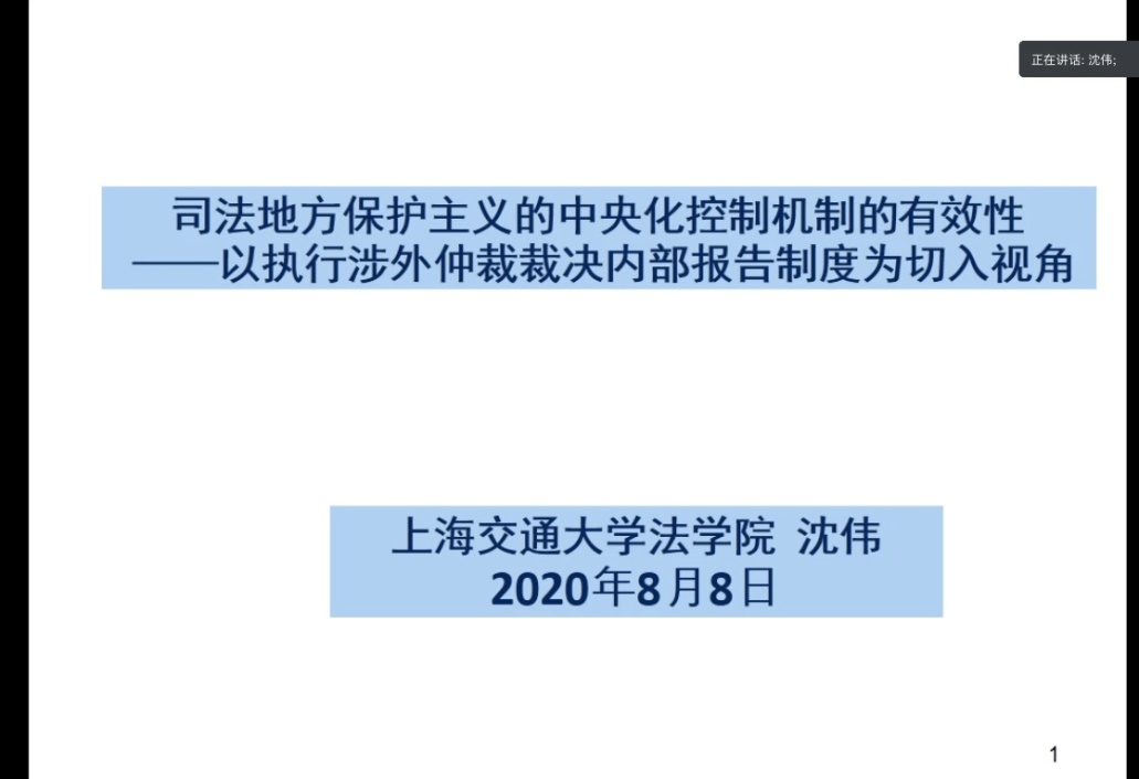 8月8日下午,365英国上市公司通过腾讯会议平台举办第116期“走向深蓝”学术系列讲座,邀请上海交通大学法公司特聘教授,博士生导师沈伟教授进行题为《地方保护主义的中央化控制机制的实证考察》的讲座,裴兆斌经理担任主持人,公司全体教师、研究生及部分兄弟院校师生共150余人参加。