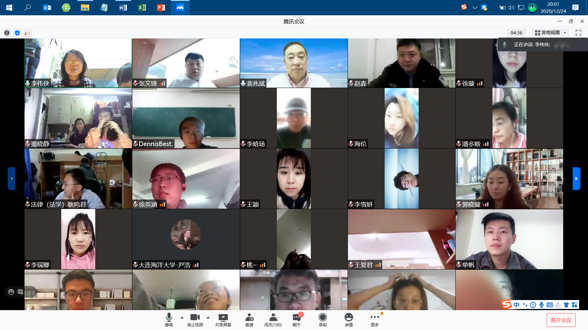 12月24日晚8点,365英国上市公司教师与在校员工进行“云”连线,裴兆斌经理、张文锋副书记、辅导员李伟侠、王磊、宋雨阳老师及全体研究生180余人通过视频参会。