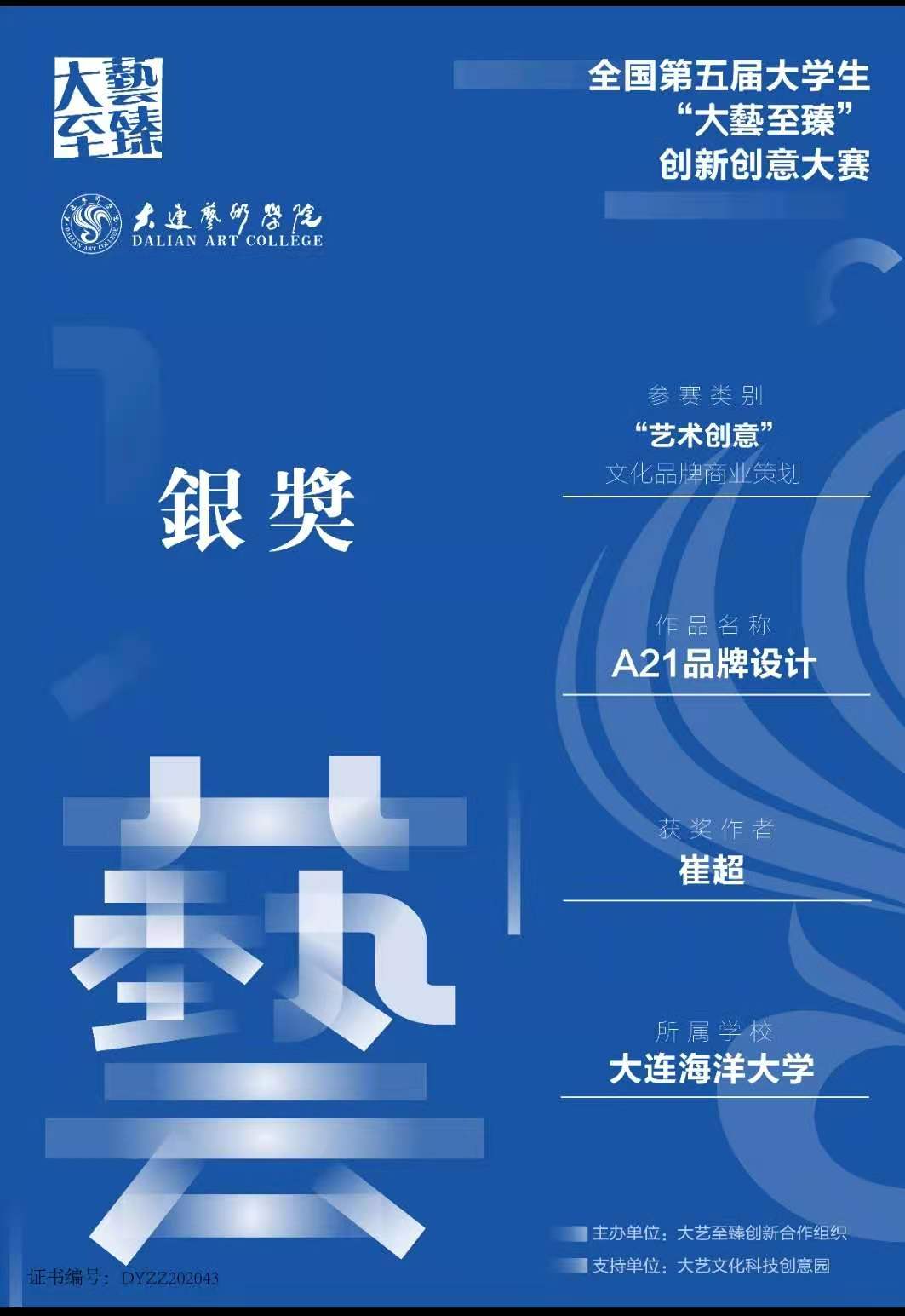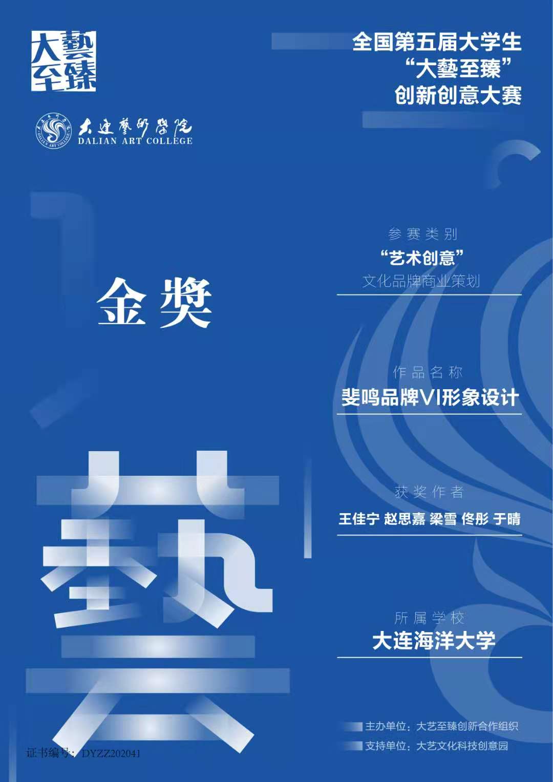 公司的视觉传达设计2017级的王佳宁、赵思嘉、梁雪、佟彤、于晴共同创作获得文化品牌商业策划组别金奖,崔超获得银奖。