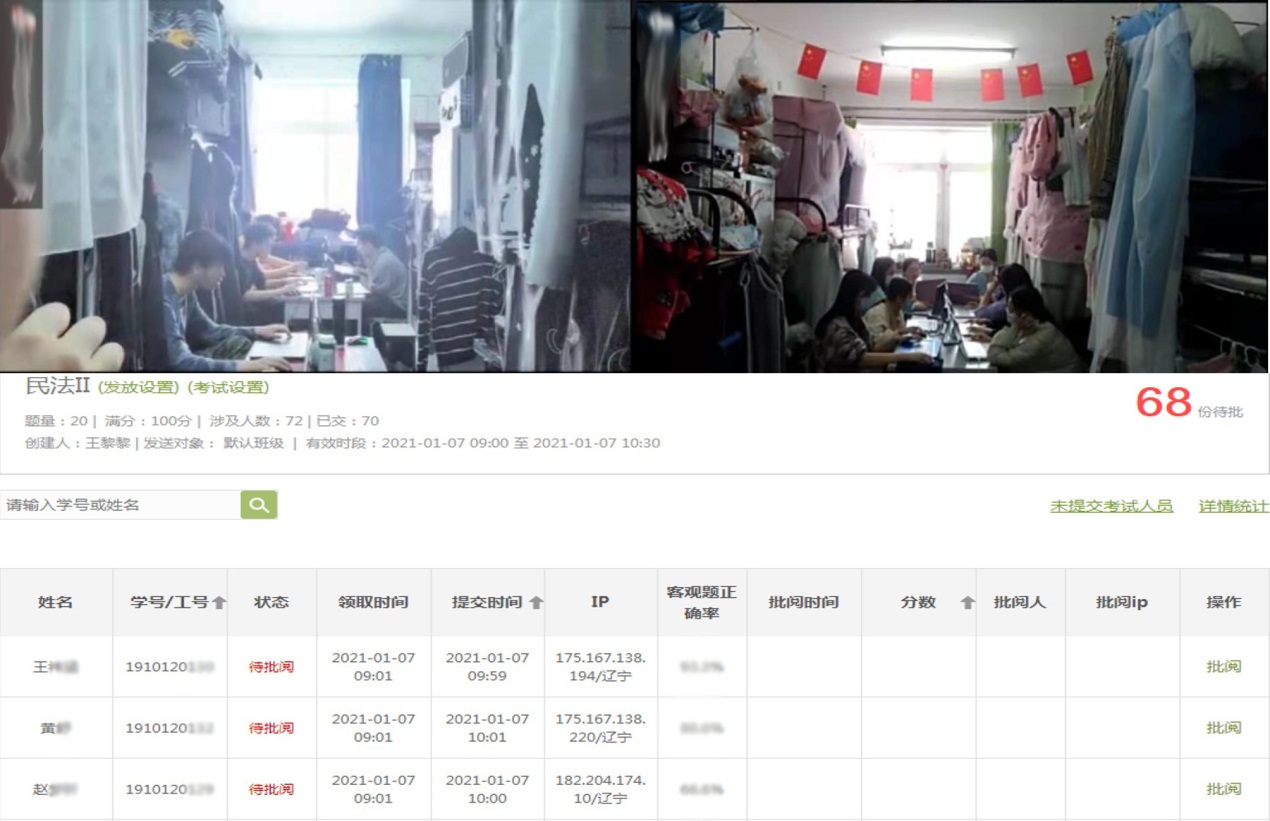 考试中,同学们克服困难,积极配合,以寝室为单位,每个寝室设置一个摄像头,在超星平台进行答题。监考老师通过腾讯会议和超星平台进行监考,准确掌握员工的实时考试情况,考试顺利结束。