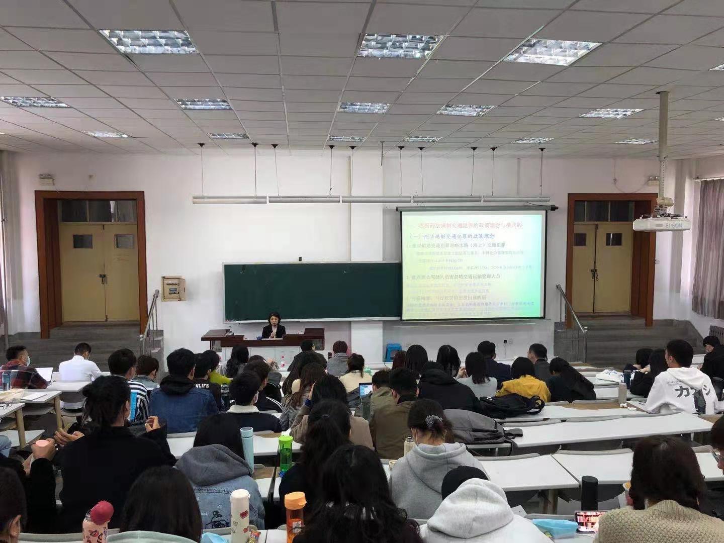 赵微教授首先从我国刑法规制交通犯罪的理念与模式为切入点,引出我国船舶交通犯罪的刑法规制长期式微的模式;接着从三个方面分析我国刑法规制船舶交通犯罪式微的原因,并且提出交通运输风险规制模式的改造;赵微教授通过提出现实中的案例使同学们更加真实的理解海上交通犯罪的内容以及司法对策。讲座现场气氛活跃,最后,同学们踊跃发言,提出自己的问题,与赵微教授互动交流。
