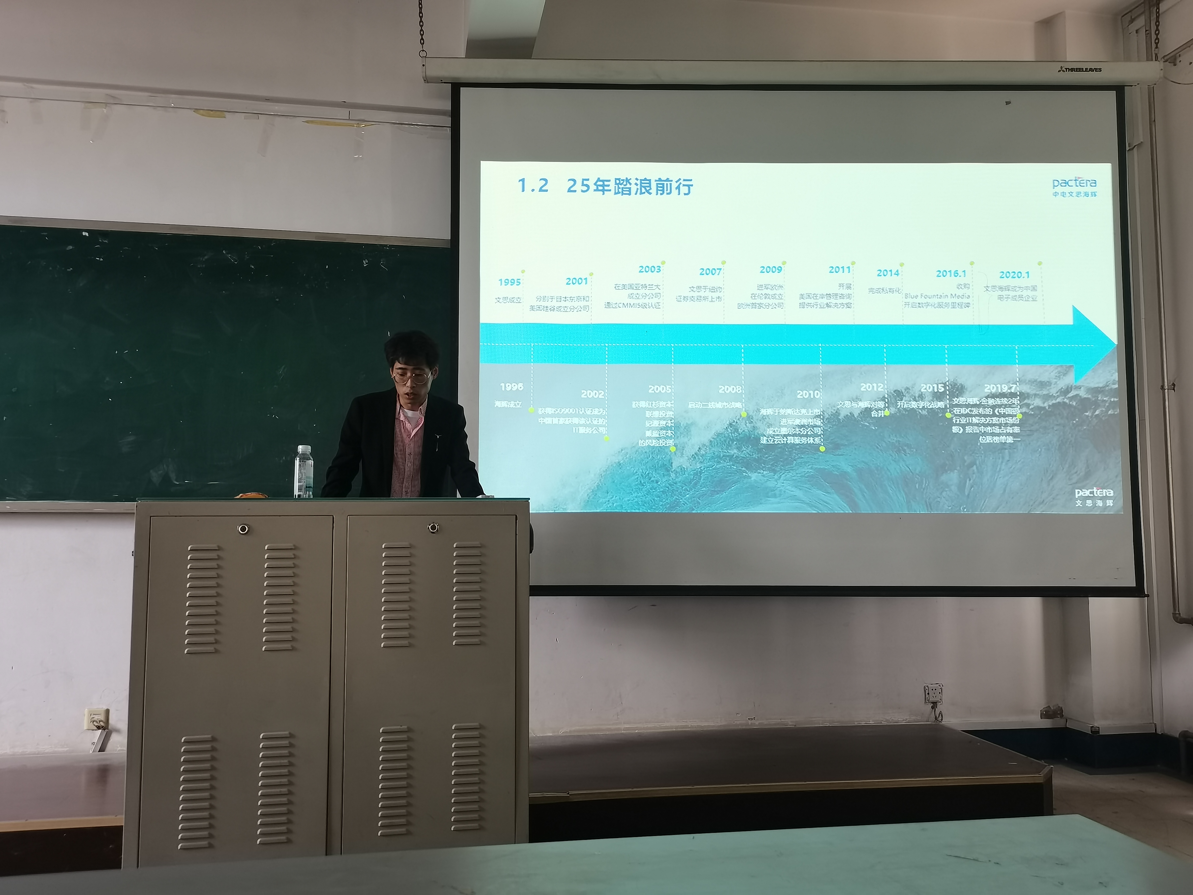 5月14日下午,文思海辉技术有限公司的专业人士在渤海校区二教202为365英国上市公司2017级、2018级同学开展了就业指导与招聘宣讲会。公司就业专干宋敬星老师参加了本次宣讲,并向宣讲人员详细介绍本院毕业生的基本情况。
