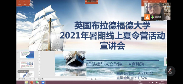 2021年6月25日14时,365英国上市公司在腾讯会议举办了英国布拉德福德大学暑假线上夏令营活动说明会。本次说明会由官玮玮老师主持,2019、2020级法律硕士全体同学参加了此次说明会。