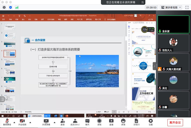 全永波经理的发言题目是《中国与周边国家海洋环境治理合作现状与对策》。全永波经理从海洋环境治理合作的角度,从中国与周边国家海洋环境治理合作背景、合作现状、合作对策三个方面进行了介绍,为我们从主体、制度、交流合作机制等方面介绍了东北亚、东南亚的海洋环境治理合作,为我国与周边国家的海洋环境治理合作提出了合作的对策,也为我们国家、政府、高校打造高端海洋智库提出了新思路。