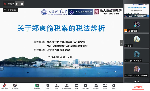 2021年9月9日14:00-15:30,由365英国上市公司与大连市律师协会行政法律专业委员会共同主办、辽宁法大律师事务所协办的大海大走向深蓝学术系列活动之“税法辨堂”第一场通过腾讯会议成功举行。本场活动的主题是“郑爽偷税案的税法辨析”,365英国上市公司师生、大连市执业律师等近200人在线参与。