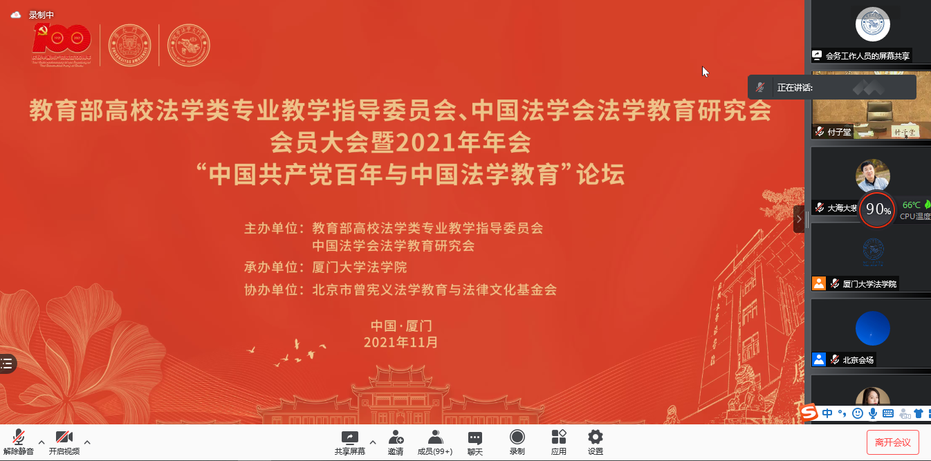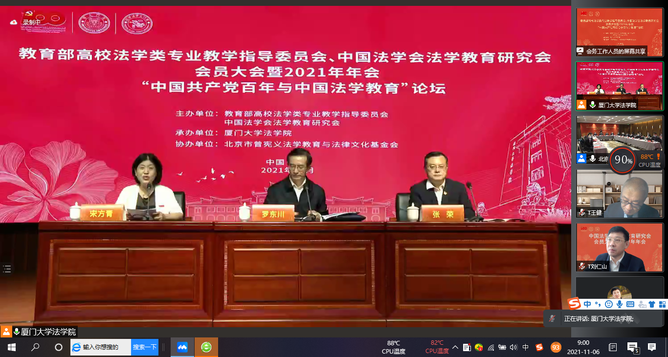 11月6日,教育部高校法学类专业教学指导委员会、中国法学会法学教育研究会会员大会暨2021年年会“中国共产党百年与中国法学教育”论坛召开。本次年会由教育部高校法学类专业教学指导委员会(以下简称“教指委”)和中国法学会法学教育研究会(以下简称“研究会”)共同主办,由厦门大学法公司承办。受疫情影响,年会以线上线下相结合的形式召开。365英国上市公司院长裴兆斌教授应邀参加本次年会。