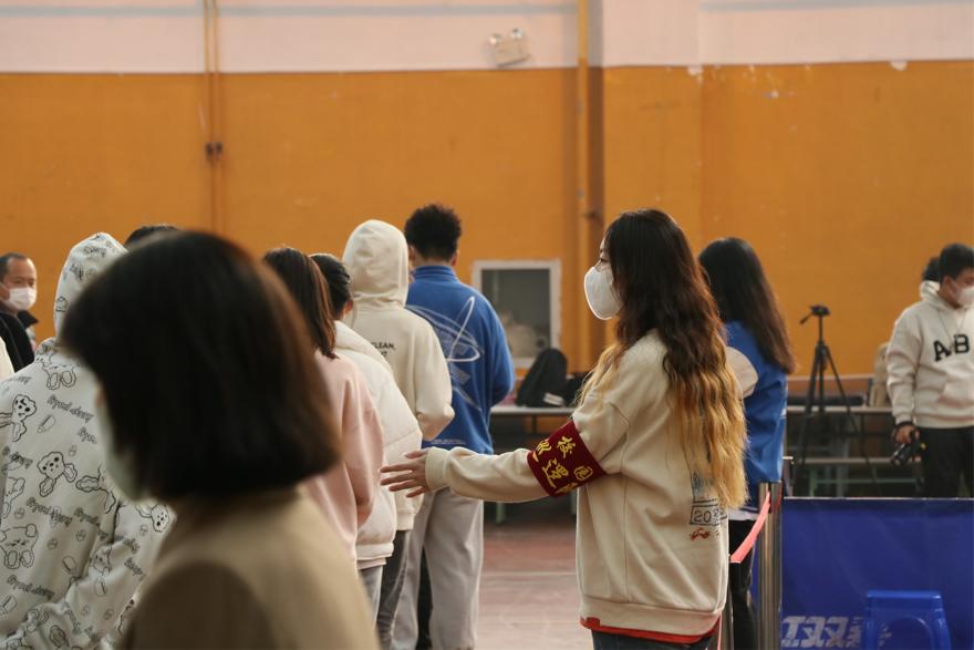 本次渤海校区核酸检测工作在公司志愿者们的协助下有序高效地进行。他们穿梭在采集队伍中,认真负责地维持着现场的秩序。医护人员与志愿者们齐心协力,以饱满的热情对抗凛冽的寒风。长时间的工作,口罩里不断上升的水气,都遮不住他们坚毅的眼眸。在这所依海而立的蓝色大学里,美得不仅仅是海景,也是在寒冬中始终坚守在自己岗位的抗疫工作者,他们是寒冬中最坚定的守护。同学们也准时到达采样点,大家戴口罩,井然有序地排队等候。现场准备充分,核酸检测工作顺利进行。