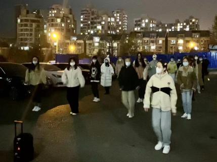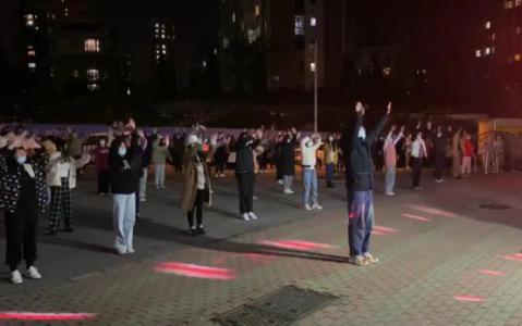每晚五点,同学们陆续走出公寓,渐渐在老员工公寓六号公寓楼前形成了一个朝气蓬勃的广播操团体。伴随着音乐的旋律,在领舞同学的带领下,大家慢慢回忆起那些熟悉的动作,一起舞动起来。