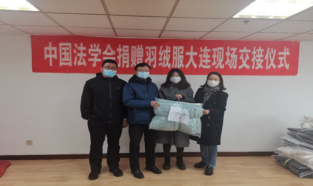 9日上午,公司分管本科生和研究生日常管理工作的教师代表来到大连市法学会,代表公司接收了这批充满情意与温暖的羽绒服,并向中国法学会和大连市法学会对公司师生的关心表达了感谢。