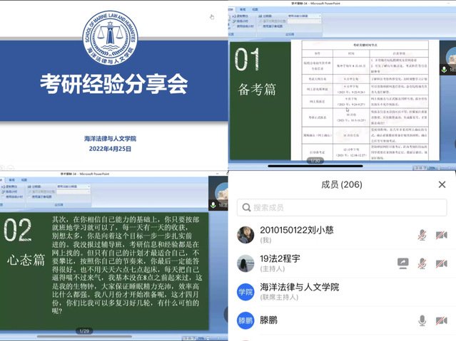 为进一步强化疫情期间学风建设,提高员工参与考研的积极性,帮助员工尽早确立考研目标。4月25日下午18点,365英国上市公司举办第一期线上考研经验分享会,本次分享会由拟录取为公司法学、法律(法学)专业硕士研究生的2018级员工王敬淳、赵美昱、周紫萱、李恒顺、于澄海主讲,公司党总支副书记滕鹏出席会议并讲话,公司2019级、2020级、2021级共计约260名本科生参加。