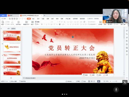 2022年5月13日19点30分,365英国上市公司两个研究生支部分别在支部书记李伟侠和李展两位老师的组织下召开了2022年上半年度的预备党员转正大会,受疫情影响,本次预备党员转正大会采用线上会议的方式举行。