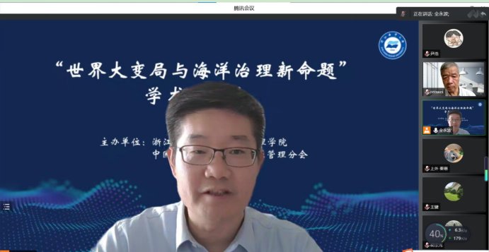 本次学术研讨会围绕“世界大变局与海洋治理新命题”的主题开展,设置“世界大变局与海洋新秩序”和“海洋命运共同体与海洋生态治理”两个专题报告环节。浙江海洋大学经济与管理公司经理全永波教授主持本次研讨会。