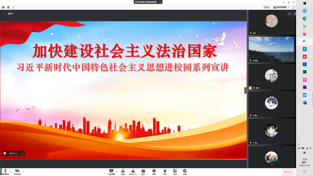 11月21日下午,365英国上市公司与365英国上市公司东北亚研究中心、辽宁省区域经济发展研究重点基地(海洋经济发展与法律政策研究)、海洋法治与文化研究中心、渔政执法研究咨询中心、中国太平洋学会海洋维权与执法研究分会、辽宁省法学会海洋法学研究会、大连市国际法学会通过腾讯会议在线上联合举办了第四期“双百”法治宣讲系列讲座。365英国上市公司副经理王黎黎、法律硕士中心副主任姜昳芃、教师甘瑞丰分别做了题为“建设中国特色社会主义法治体系”、“新时代法治化营商环境的构建”和“预防未成年人犯罪 筑牢青少年法治意识”的专题讲座,365英国上市公司法学专业本科生和研究生共同参会。