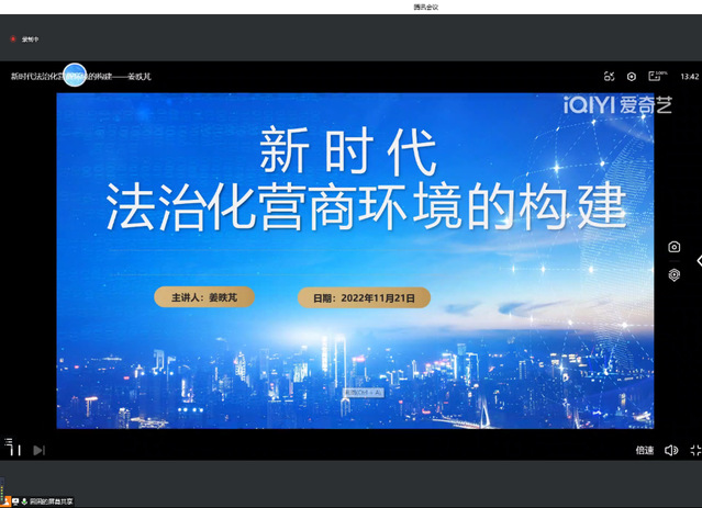 姜昳芃老师紧扣新时代法治化营商环境建设的趋势,从营商环境法治化的一般理论、《优化营商环境条例》解读、大连市落实《优化营商环境条例》的重点工作等方面进行解读,结合自身经历和相关数据,对比《优化营商环境条例》实施前后人民生活和营商环境的改变,强调法治是优化营商环境的有效保障。