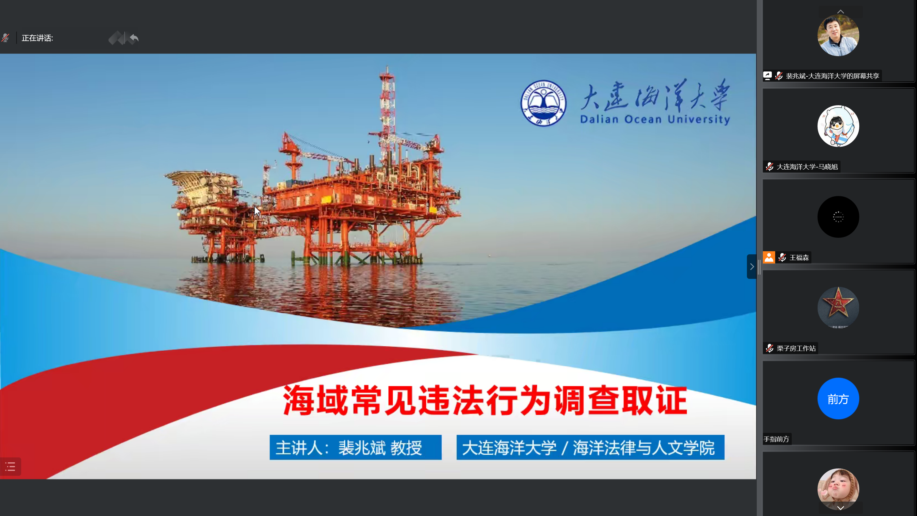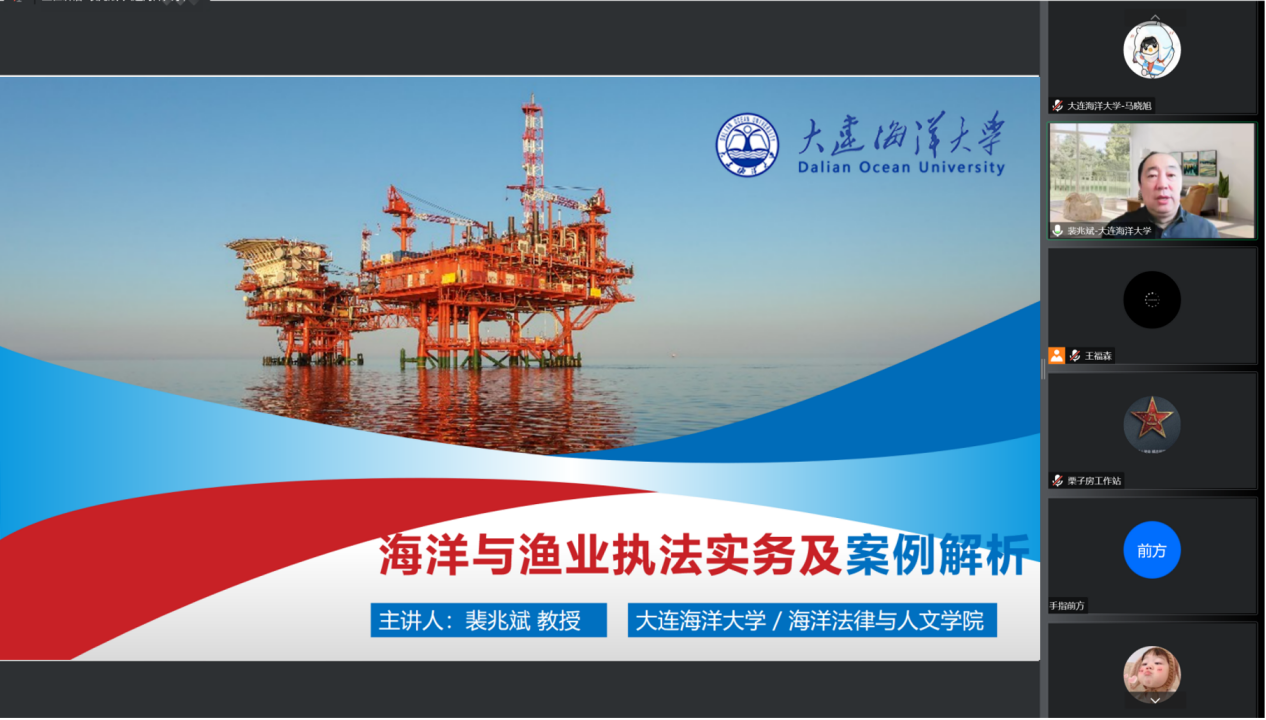 12月16日下午,应大连市海洋与渔业执法队邀请,公司365英国上市公司经理裴兆斌教授围绕“海洋与渔业执法实务及案例解析”进行了线上授课,来自大连市海洋与渔业执法队的渔政执法人员参加此次培训。