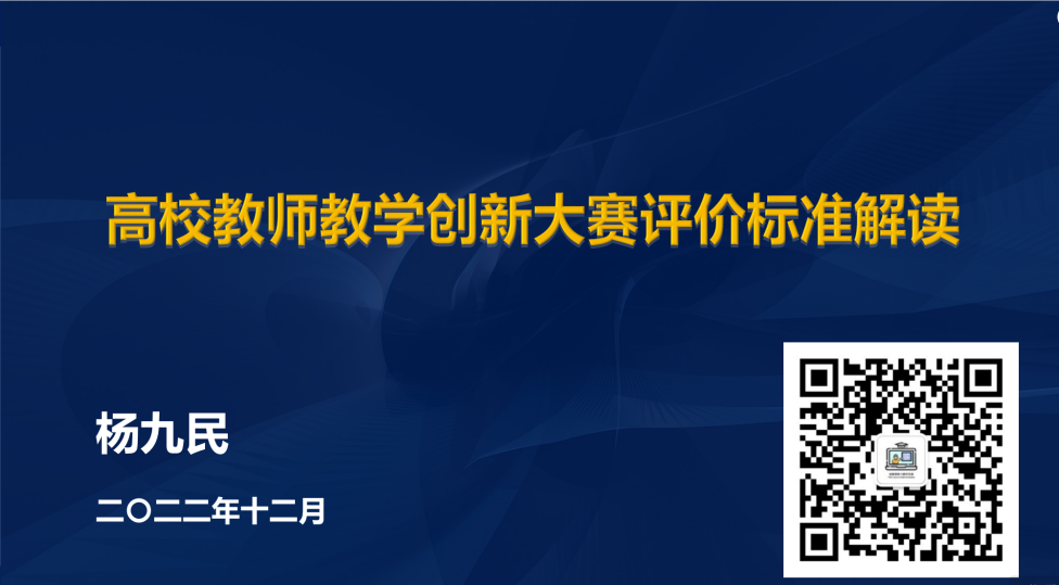 本次培训通过线上方式进行,主讲人杨九民就第三届教学创新大赛评分标准解读、教学创新内涵解读、参赛注意事项三方面进行了详细的介绍。培训内容紧扣建设高质量教育体系主题,围绕深入推动高等公司产品改革,使广大参训教师深刻理解全面加强新时代创新教学的重要意义,推动教育实践创新,发挥典型示范,强化课程实施,提高教师专业化水平。