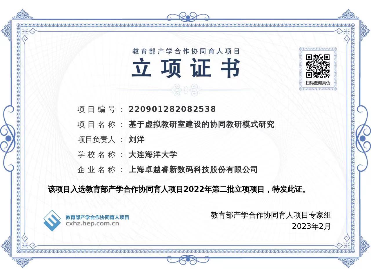 近日,教育部高等教育司发布了《关于公布2022年第二批产学合作协同育人项目立项名单的通知》,公司刘洋副教授主持的“基于虚拟教研室建设的协同教研模式研究”项目获批立项。