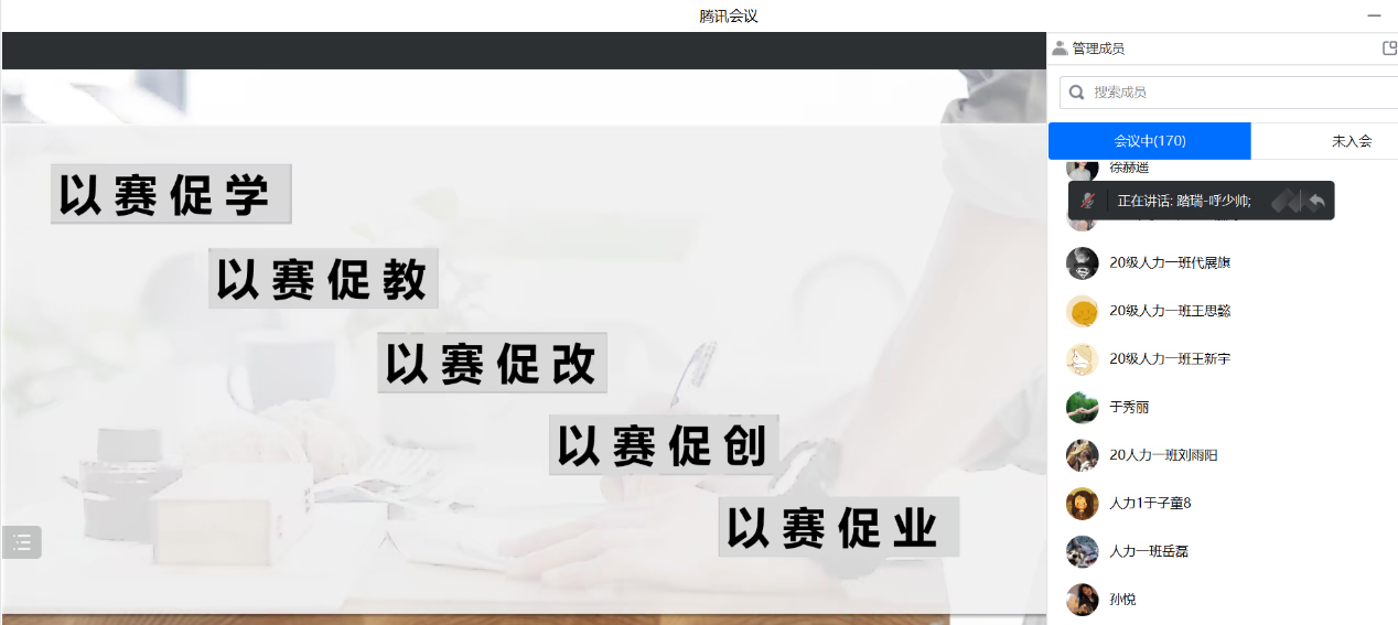 呼少帅经理详细介绍了人力资源管理专业竞赛的赛程、团队组建注意事项,此外还向同学们介绍了人力资源管理专业竞赛对同学们今后职业发展的影响,为同学们答疑解惑,同时鼓励大家在理论与实践的道路上不断地摸索、推敲,在竞赛平台上大放异彩。