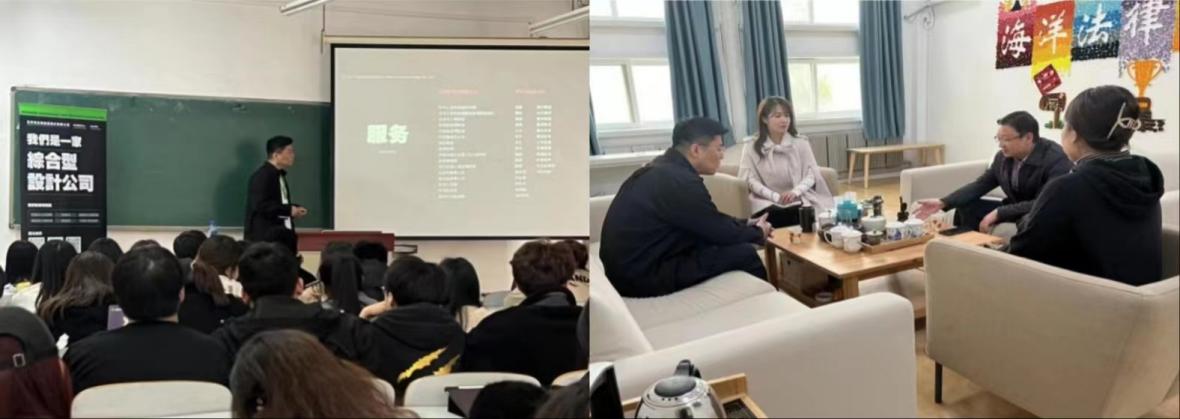 丁宁结合自身开创公司的经历,传达了新时代青年的设计理念,并对未来的青年设计师寄予希望。他还提醒同学们要做好规划,抓住求职关键期。会后,滕鹏向丁宁介绍了公司专业情况,并围绕公司发展和育人特色与丁宁进行深入交流,他表示希望企业能够与公司、院系保持沟通,共同培养优秀人才。