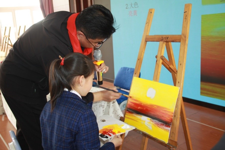 视觉传达设计教研室主任张仕春及教学团队和锦华小学的员工共同创作了绘画作品。