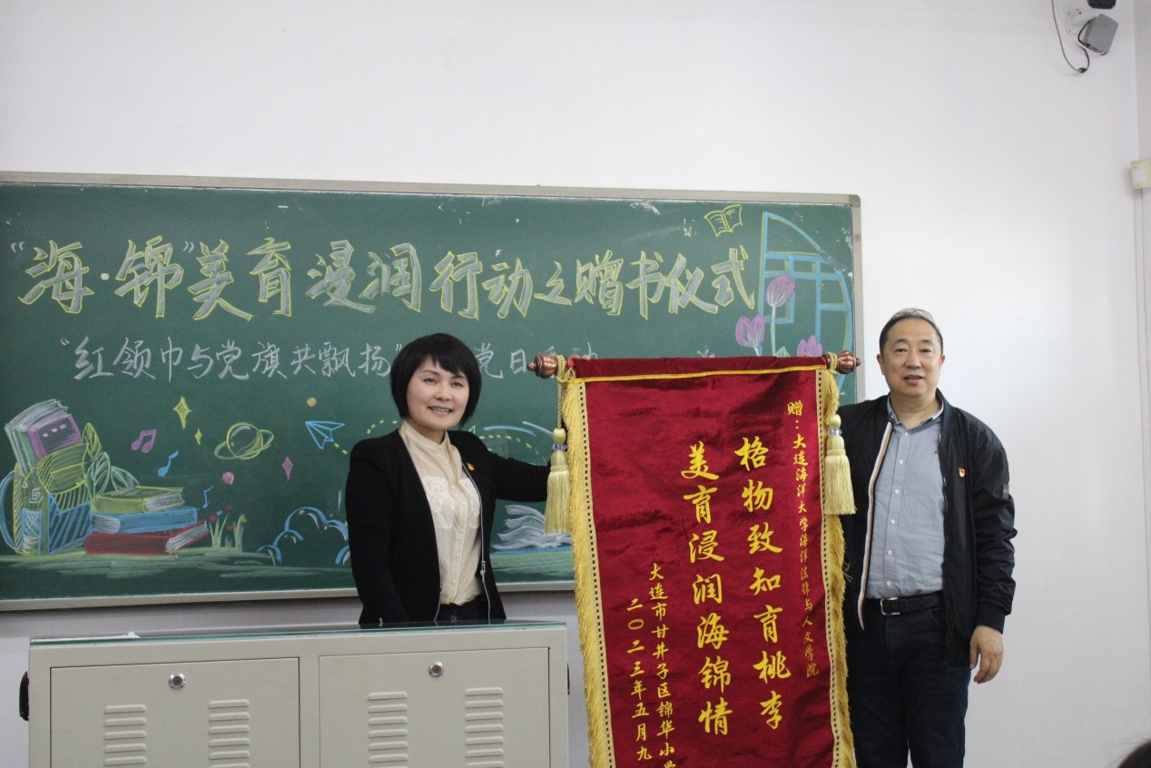 锦华小学向公司赠送了“格物致知育桃李,美育浸润海锦情”的锦旗。