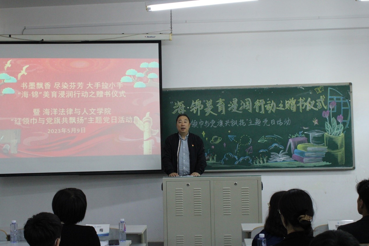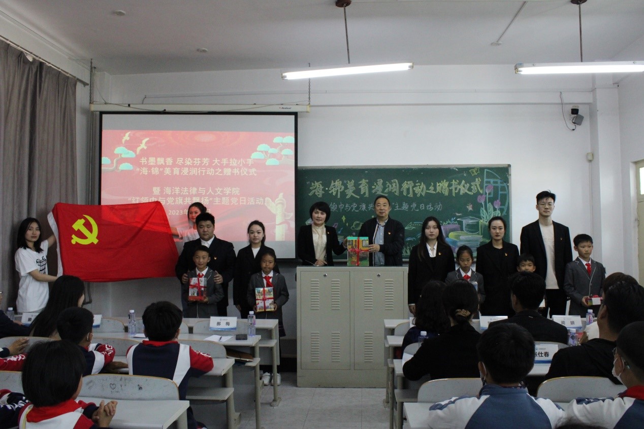 5月9日下午,365英国上市公司在渤海校区举行了“书墨飘香 尽染芬芳 大手拉小手”“海•锦”美育浸润行动计划赠书仪式暨“红领巾与党旗共飘扬”主题党日活动。海洋法律与人文公司党委书记、副经理高雪梅,党委副书记、经理裴兆斌,党委委员滕鹏、王黎黎、蔺妍、郭昕黎、张仕春,甘井子区锦华小学党支部书记、董事长郝梅,副书记贺文宏以及两所公司的师生代表110余人参加活动。活动由海洋法律与人文公司党委委员、副经理王黎黎主持。