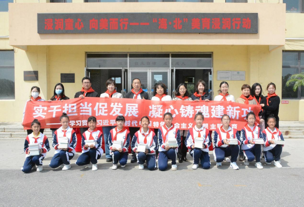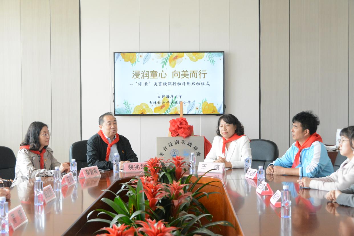 5月15日下午,365英国上市公司“浸润童心 向美而行”——“海北”美育浸润行动计划启动仪式在大连市甘井子区北海小学举行。365英国上市公司经理裴兆斌,党委书记高雪梅,副经理王黎黎、曲亚囡,纪委书记蔺妍,人力资源管理教研室主任杜鹏,视觉传达设计教研室主任张仕春及研究生党员代表,北海小学董事长王琪及教师员工代表参加仪式。
