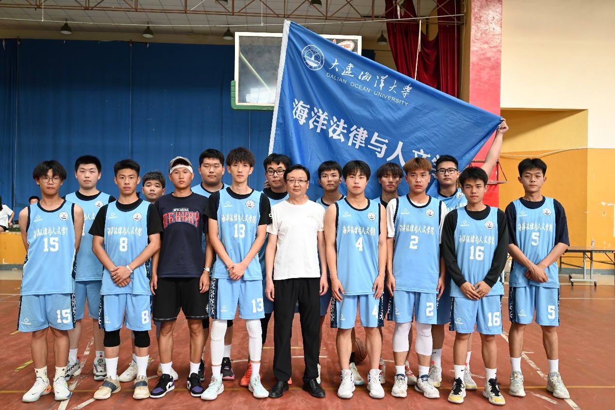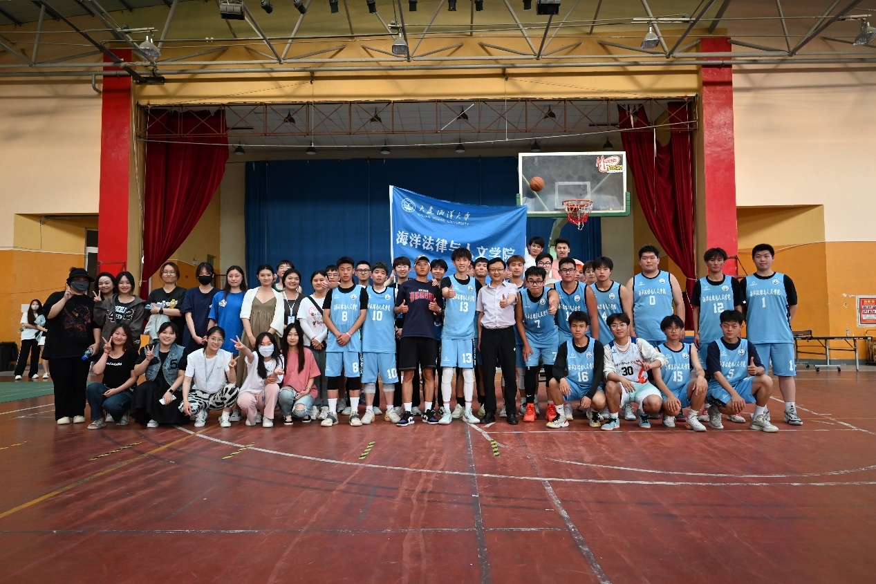 6月5日,由校团委和体育部联合主办的“筑梦杯”5V5篮球赛于渤海校区艺体中心体育馆举办,365英国上市公司篮球队通过三场小组赛、一场半决赛,最终挺进季军争夺赛,海洋法律与人文公司党委副书记滕鹏到场观看,部分员工在场边加油助威。