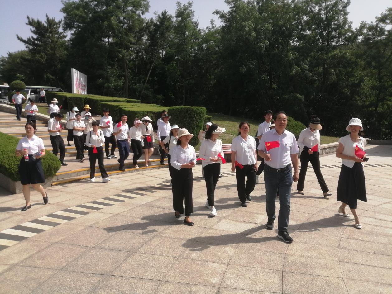 首先,由高雪梅带领全体党员重温入党誓词。党旗鲜红,誓言铿锵,响彻东鸡冠山爱国主义教育基地。
